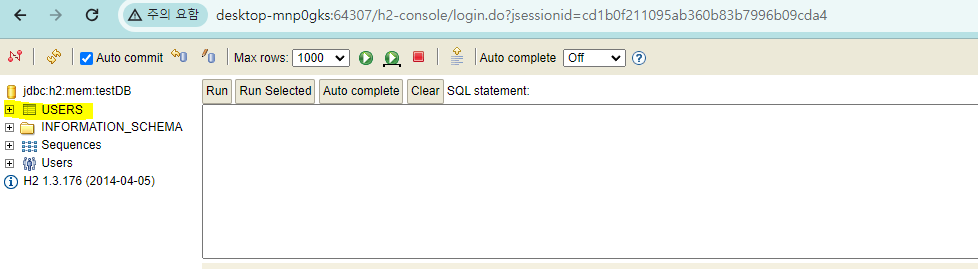 방법2) url을 jdbc:h2:mem:testDB 이렇게 써라