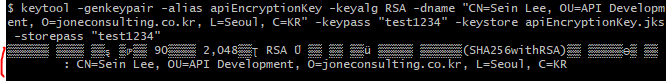 -keypass "test1234" -keystore apiEncryptionKey.jks -storepass "test1234"