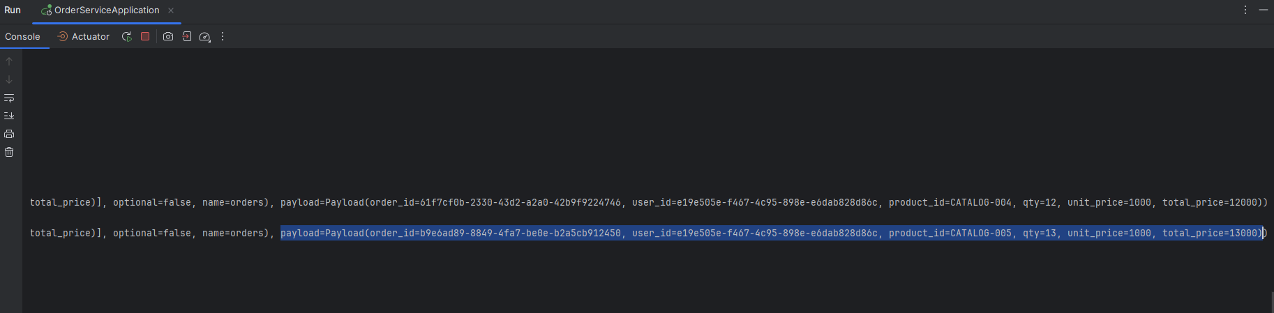 kafkaProducer.send("orders", orderDto); // order와 uesr 테스트