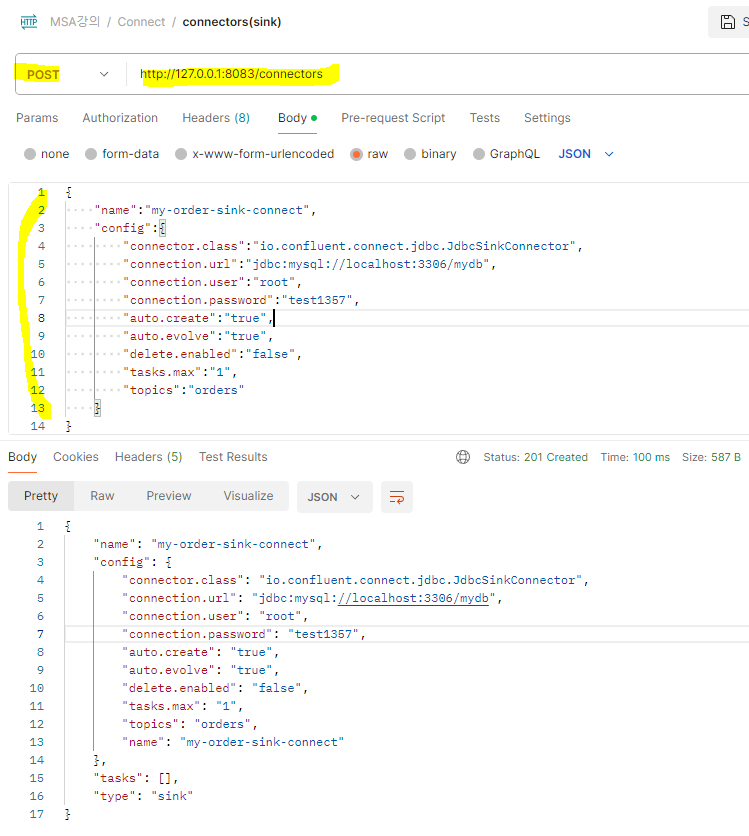 step5. Orders Service를 위한 kafka Sink connector 추가