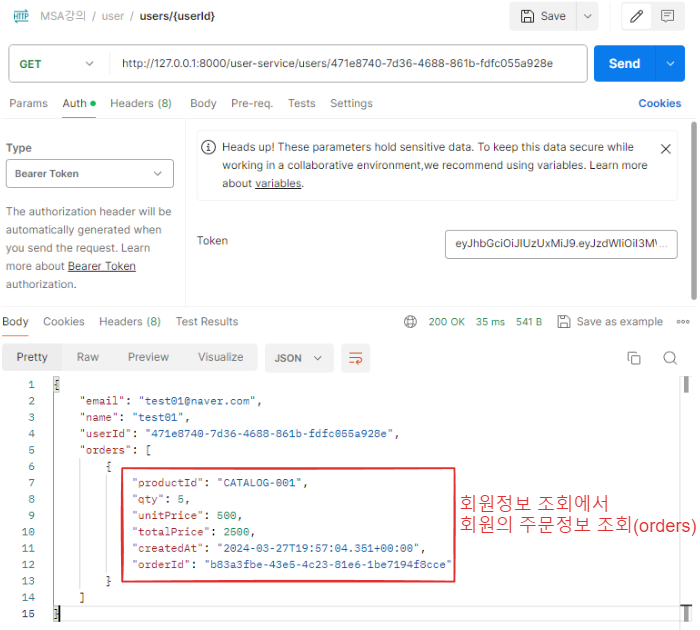 PostMan์์ ํ์๊ฐ์ ๊ณผ ๋ก๊ทธ์ธ ํ ํ์์ ๋ณด ์กฐํ ์คํ