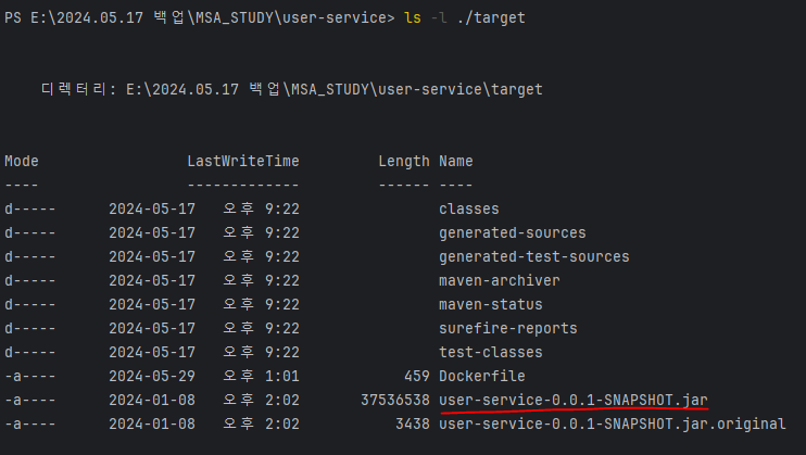 💡 파일 이름을 바꾸고 싶을 경우 pom.xml에 가서 version 이름을 바꾸면 된다.
