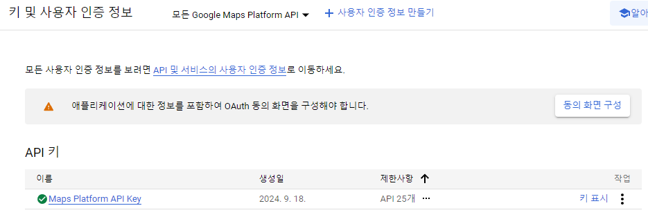 Google Maps API에서 준 key값을 넣으면 된다.(아래에 나온다.)