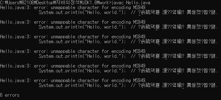 <해결> > 컴파일 시 인코딩을 utf-8로 맞춰준다.