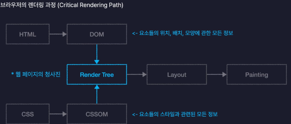 DOM에는 HTML로 표현한 요소들의 위치나 배치 모당 등에 관한 정보, CSSOM에는 CSS로 표현한 요소들의 스타일에 관한 정보를 합쳐서