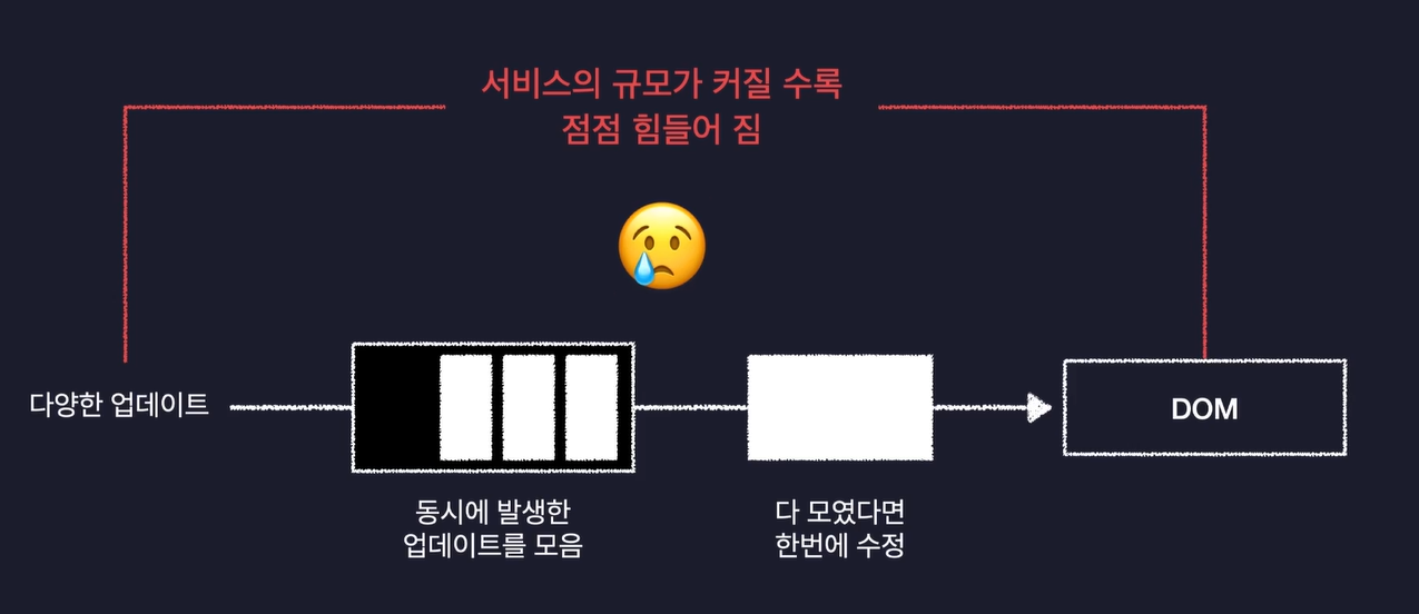 하지만 실제로 개발하게 될 복잡한 대규모의 서비스에서는 다뤄야하는 업데이트들이 많아서 힘들다.