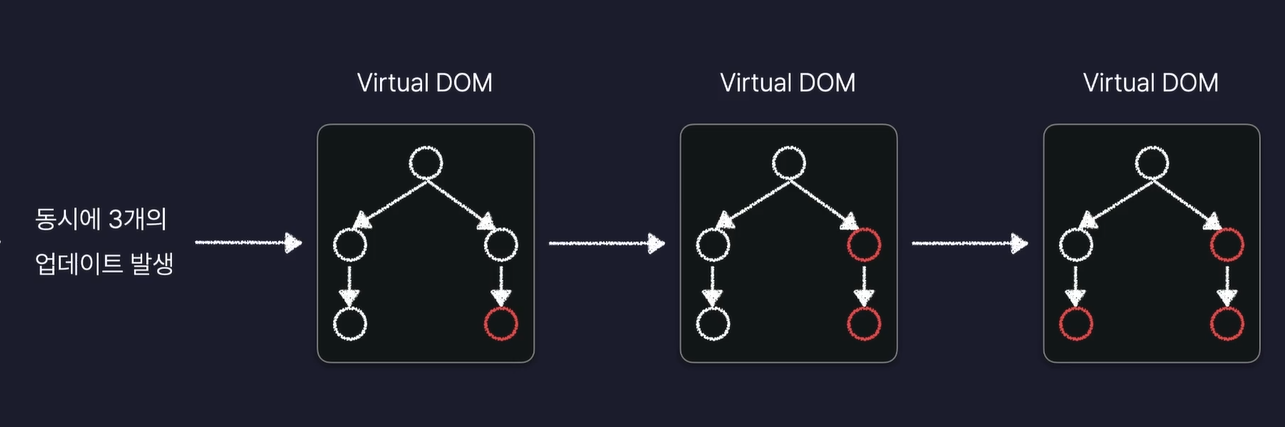 React에서는 업데이트가 3번 발생하면 실제 DOM을 바로 수정하는게 아니라