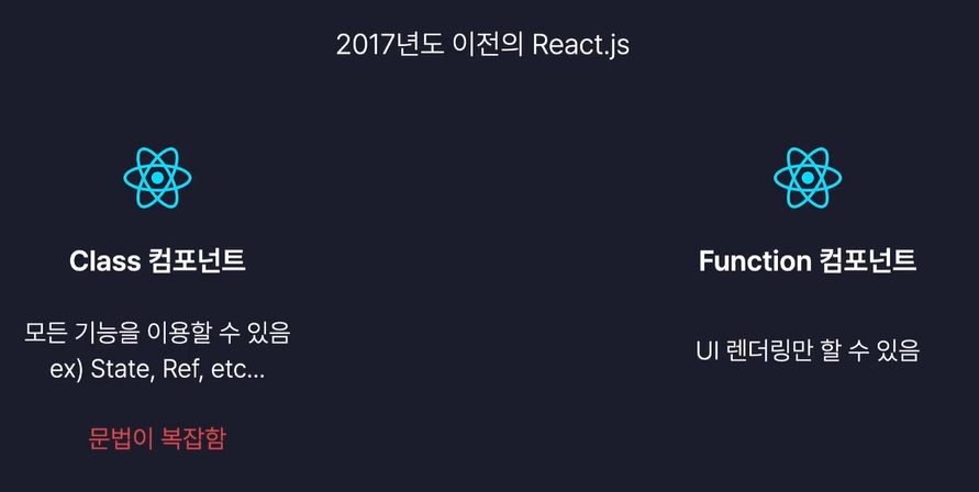 클래스 컴포넌트의 기능을 함수 컴포넌트에서도 이용할 수 있도록 도와주는 메서드