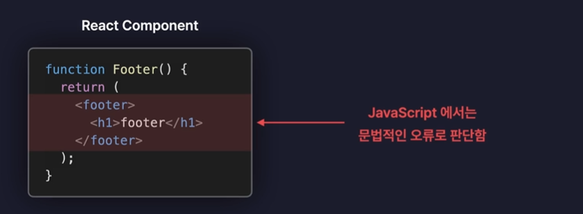 jsx파일에서는 자바스크립트와 HTML을 혼용하여 사용가능하게 한다.