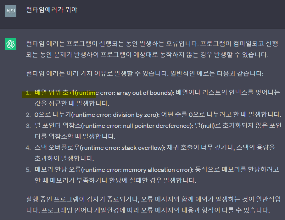 - 왜 런타임 에러가 발생하는가? -> 범위 지정을 안해줘서