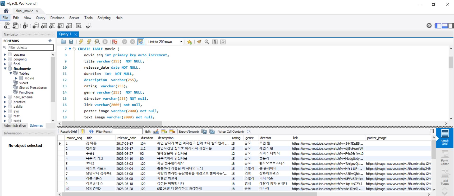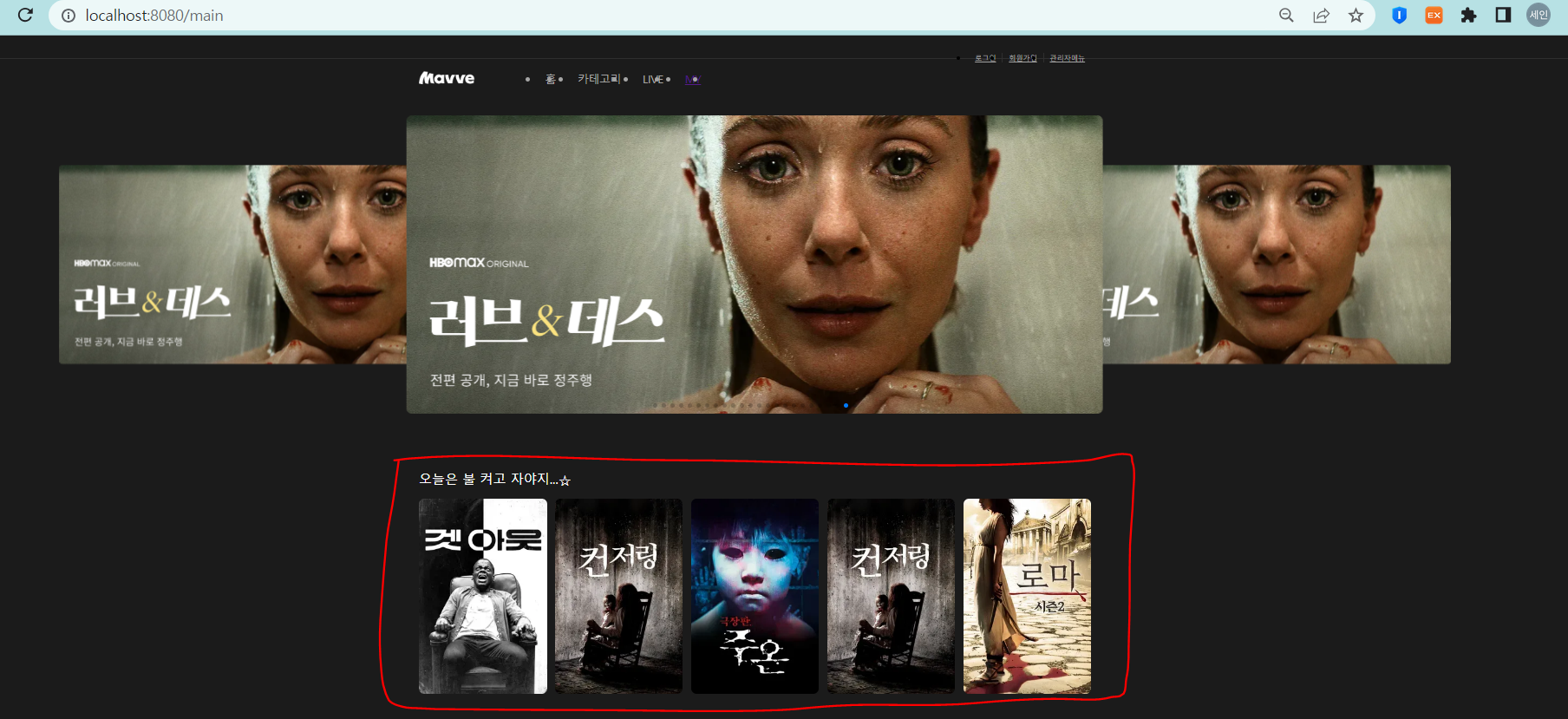 servlet에서 공포, 액션 영화만 있는 list를 jsp에서 불러줌.