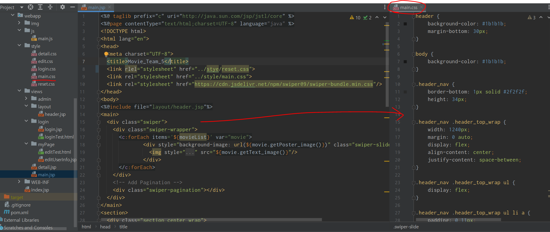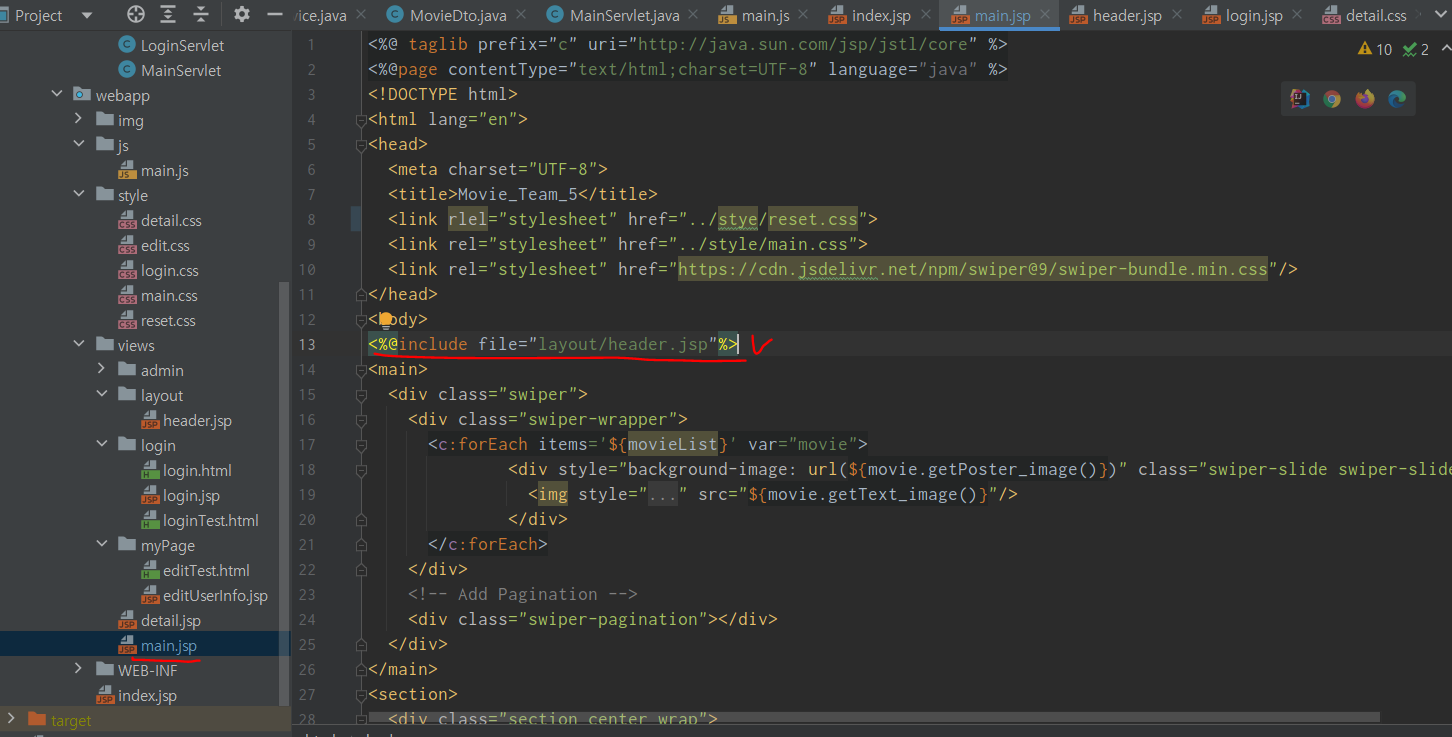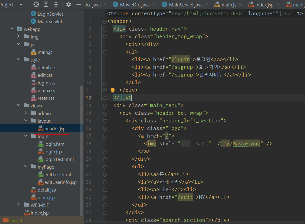 main.jsp의 <body>에 <%@ include file="../layout/header.jsp"%> 를 넣어줌