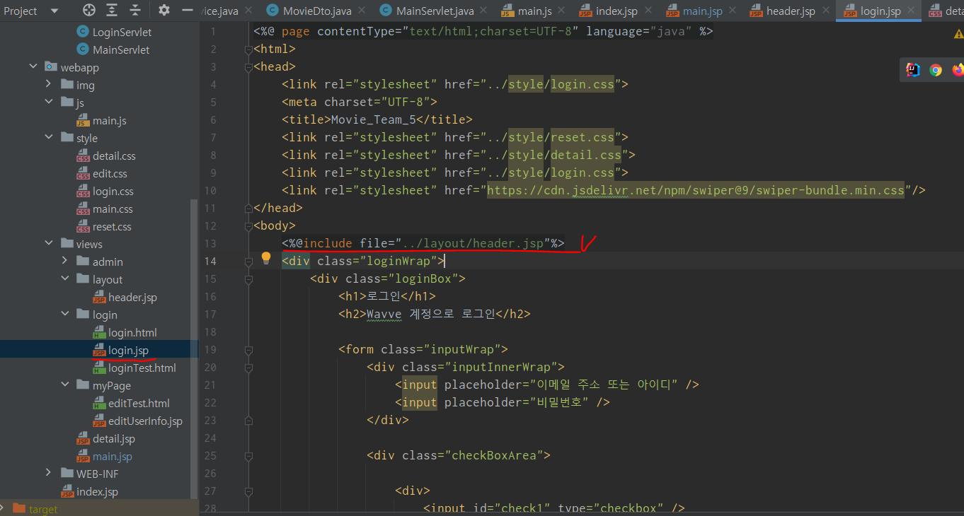 login.jsp의 <body>에 <%@ include file="../layout/header.jsp"%> 를 넣어줌