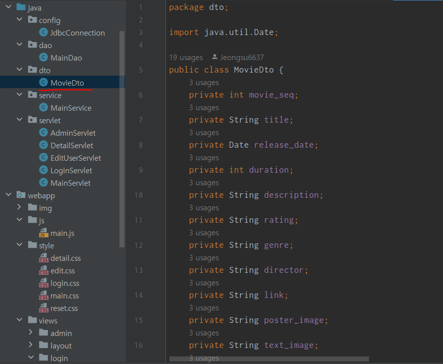 주로 Dao에서 한번에 변수 3~4개 이상이 필요할 때 Dto 생성.