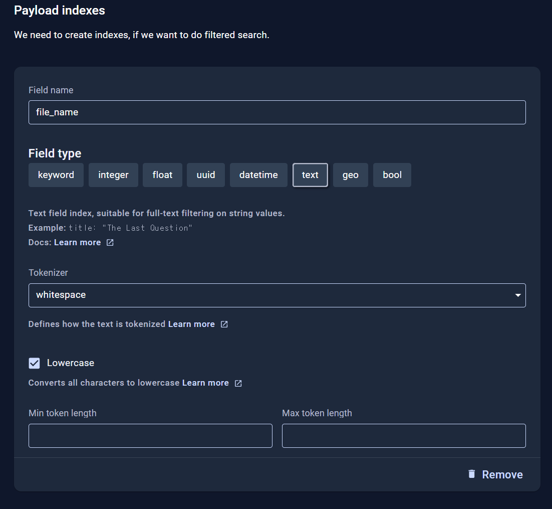 Collection 생성할 때 Payload indexes 필드를 어떻게 해야하는지 알아보자.