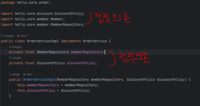 public OrderServiceImpl(MemberRepository memberRepository, DiscountPolicy discountPolicy) {