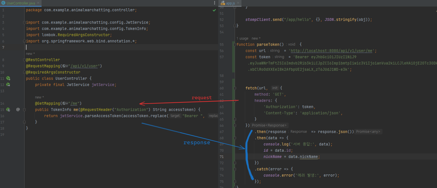 method: 'GET', // GET요청을 서버로 보냄..서버 UserController의 @GetMapping("me")로 가자..