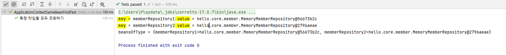 📌 Map<String, MemberRepository> beansOfType = ac.getBeansOfType(MemberRepository.class);