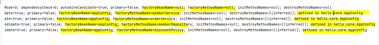 // ApplicationContext를 쓰면 getBeanDefinitionNames이 없기 때문에 AnnotationConfigApplicationContext를 써줘야 한다..