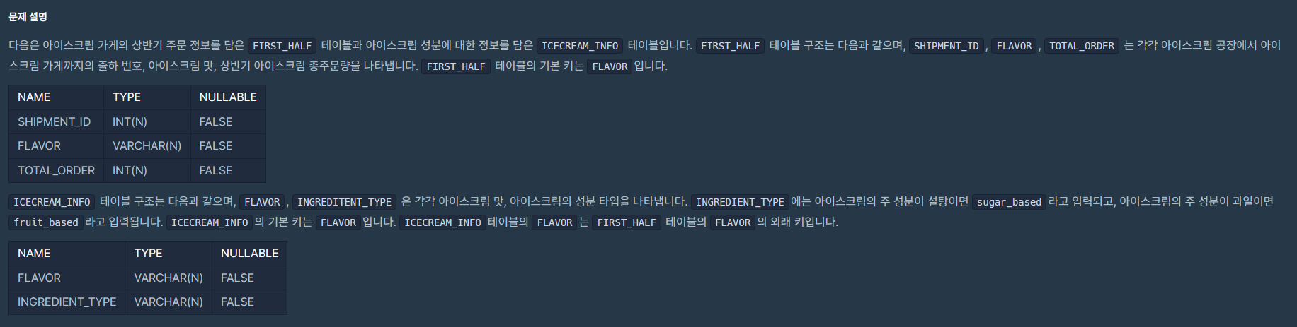 ICECREAM_INFO테이블을 I라고 줄여 말하겠다.