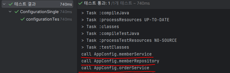 결과적으로 각각 다른 2개의 MemoryMemberRepository 가 생성되면서 싱글톤이 깨지는 것 처럼 보인다.
